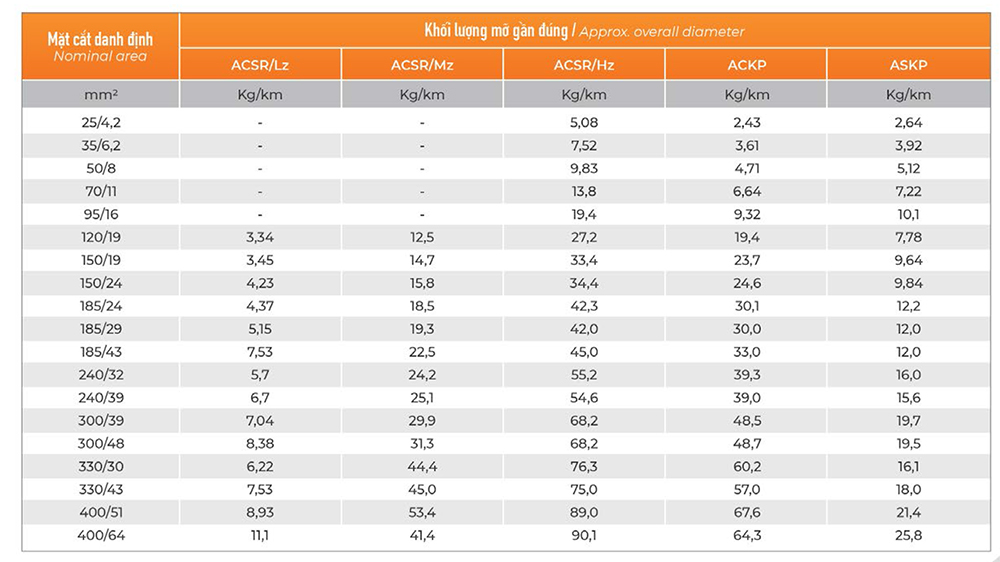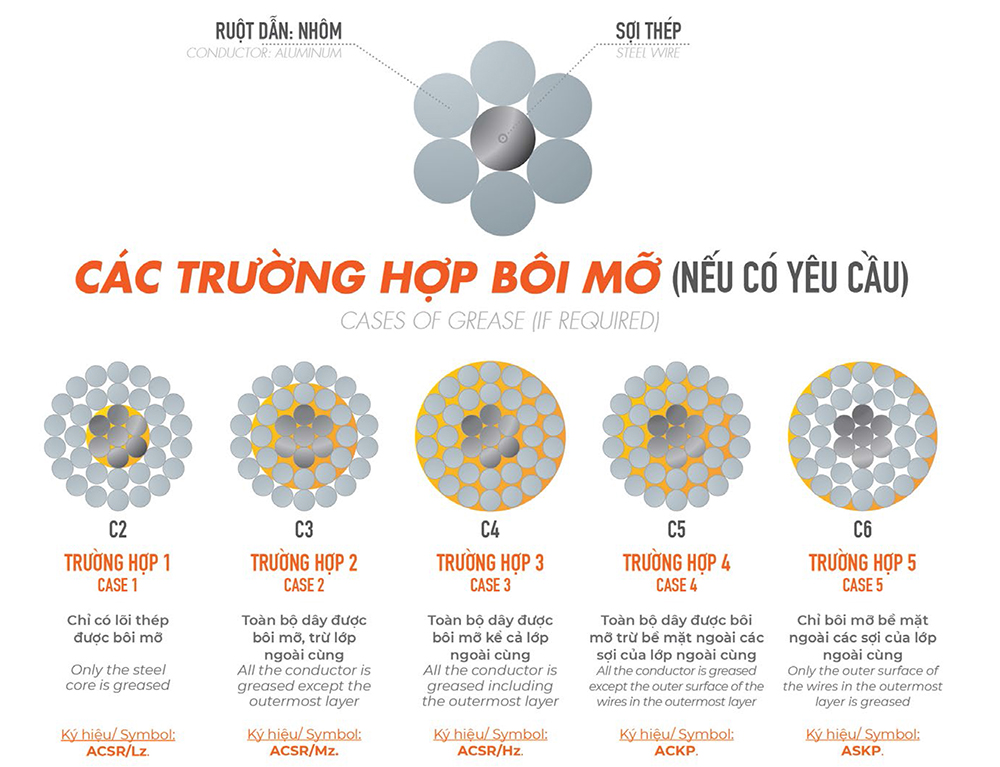 Aluminum conductor steel reinforced: greased or not greased with a neutral grease of melting point not less than 105oC.