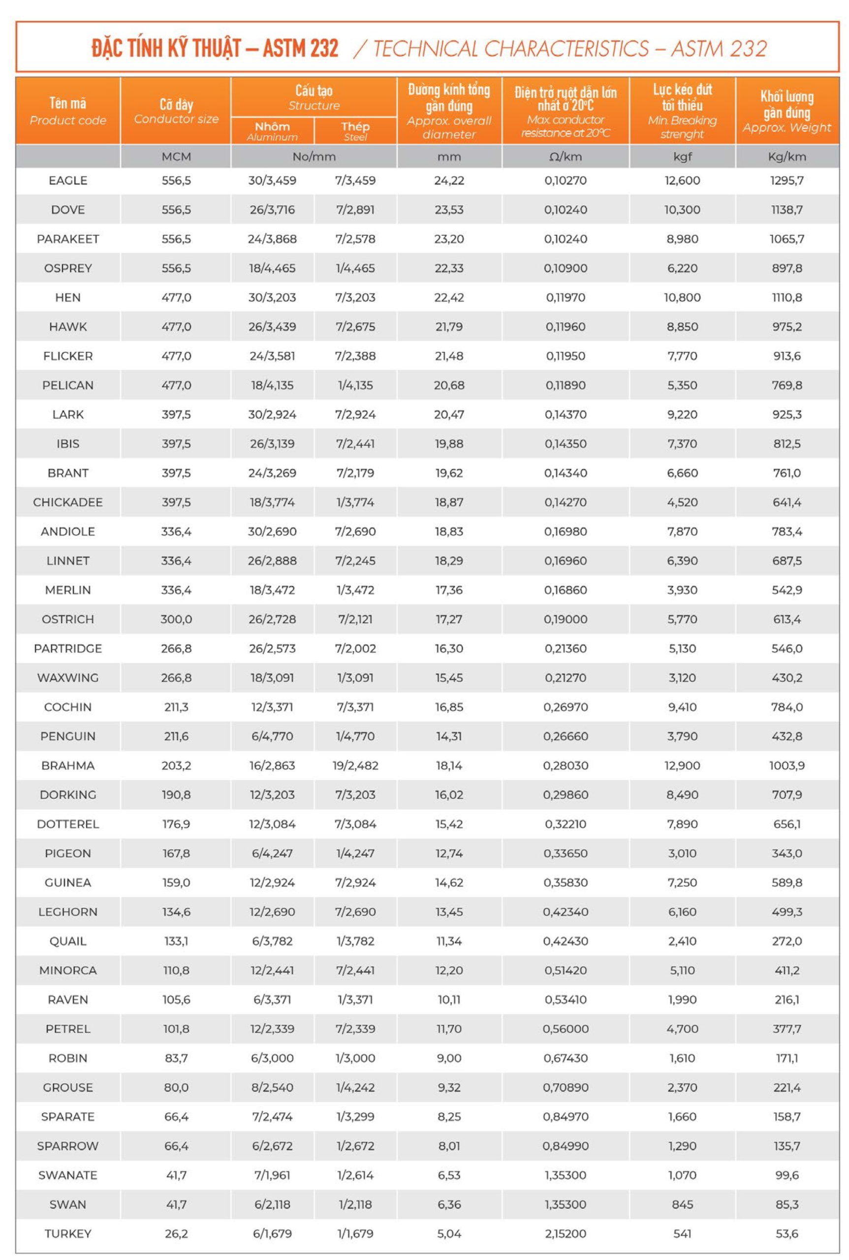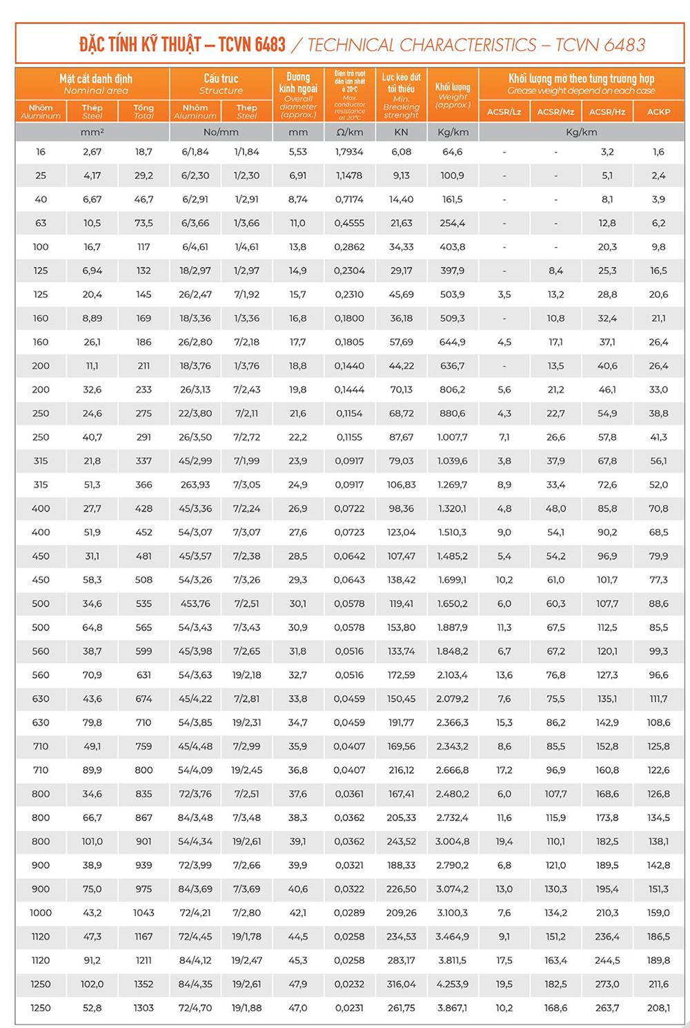 - IEC 61089/TCVN 6483 or ASTM B232/B 232M or equivalent standard.