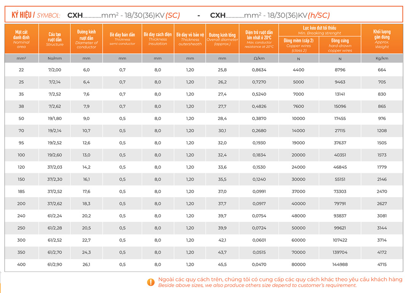 CXH…mm2 – 18/30(36)KV (SC), CXH…mm2 – 18/30(36)KV (h/SC)
