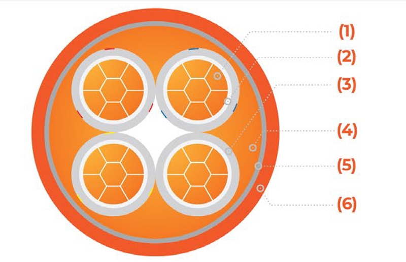 (4) Lớp độn và vỏ bọc bên trong: FR-PVC.