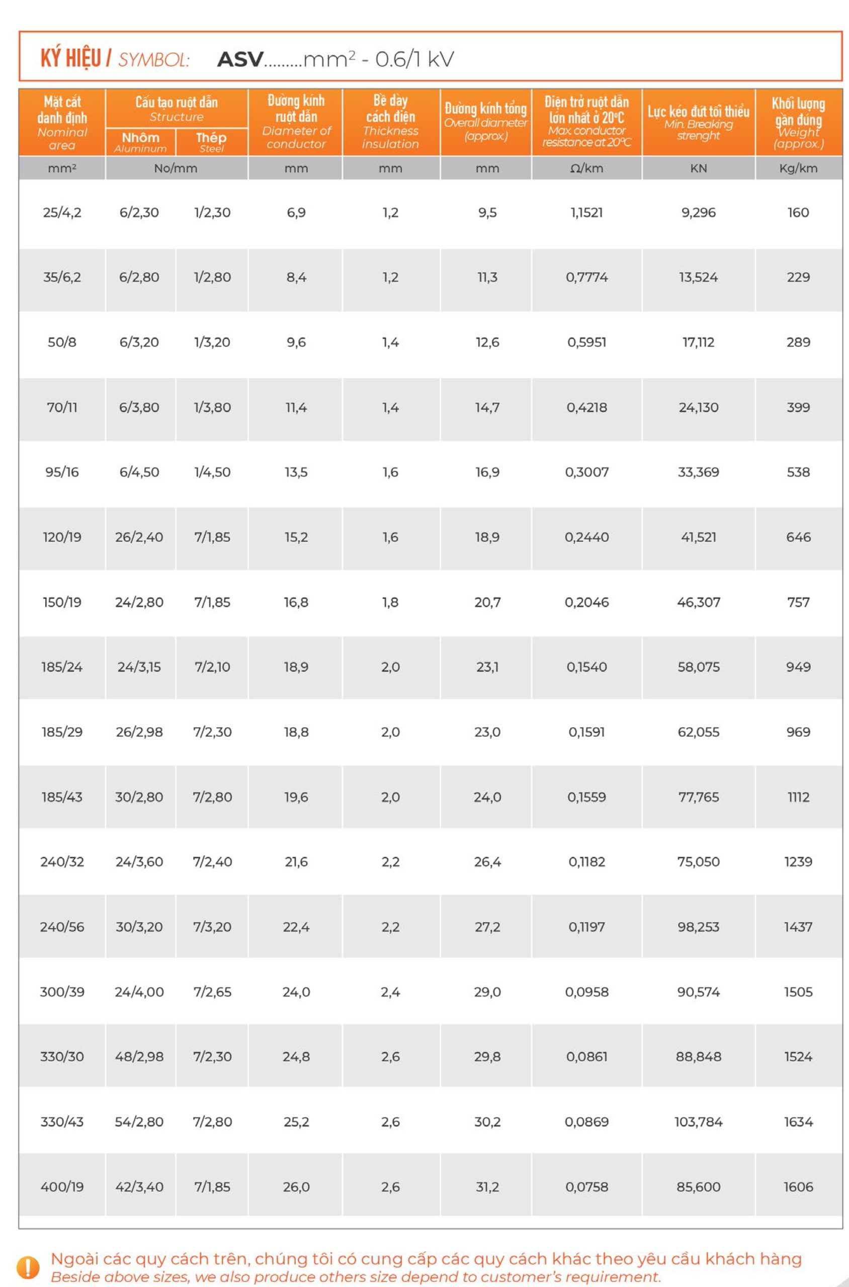 Ký hiệu: ASV…mm2 – 0,6/1KV