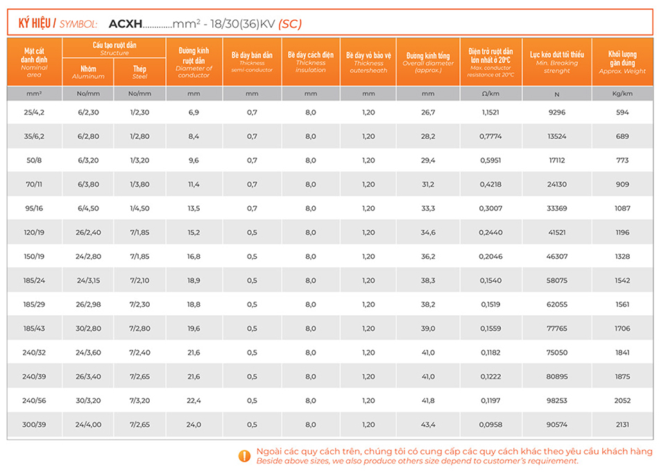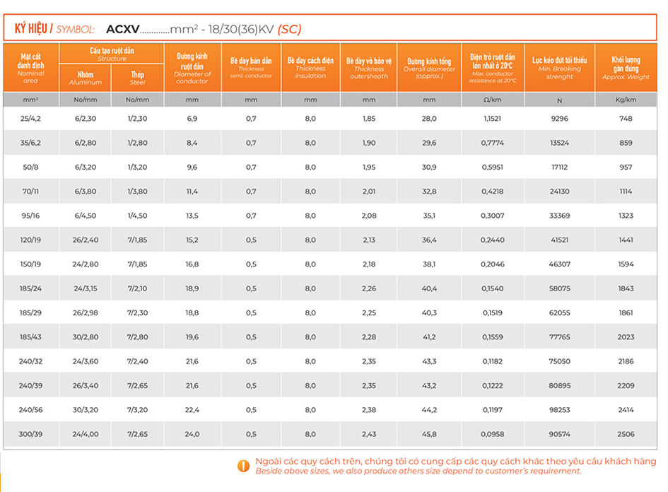 - Cấp điện áp U0/U(Um): 18/30(36) kV.