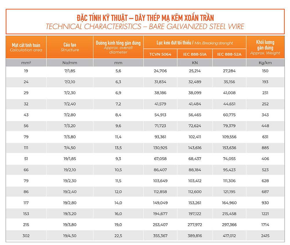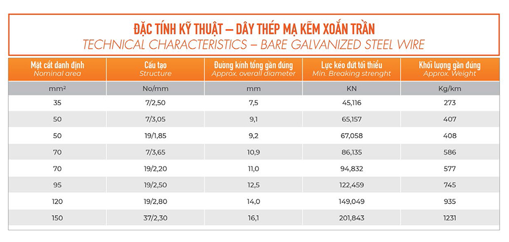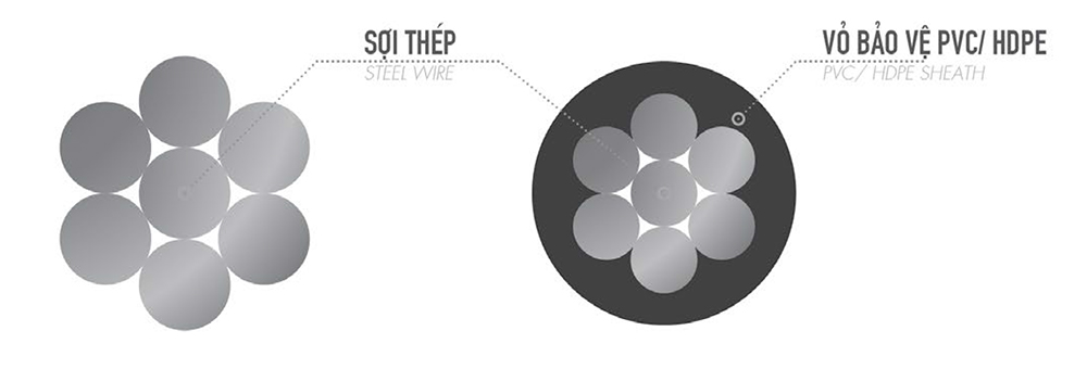 - Bằng sợi thép mạ kẽm, xoắn đồng tâm.