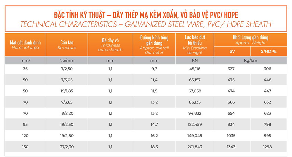 - Vỏ bảo vệ: Không có/có vỏ (PVC/ HDPE).